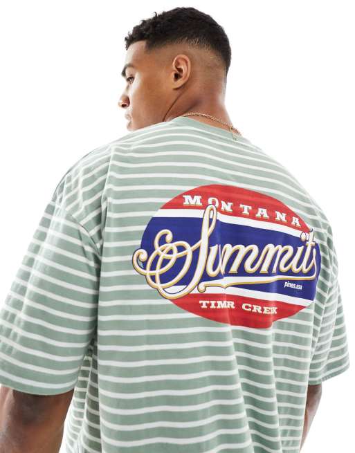 ASOS DESIGN - Oversized T-shirt med print på brystet og ryggen og salviegrønne og hvide striber