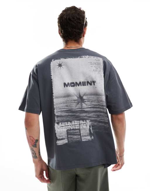 ASOS DESIGN - Oversized t-shirt med print på ryggen i koksgrå