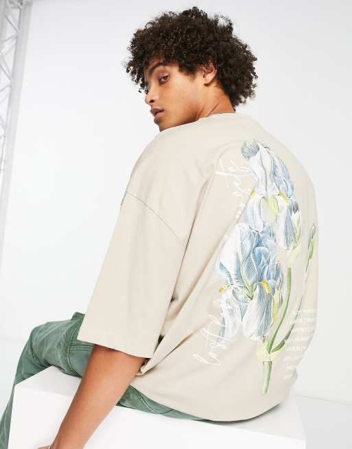 ASOS DESIGN - Oversized T-shirt med tekstprint foran i beige