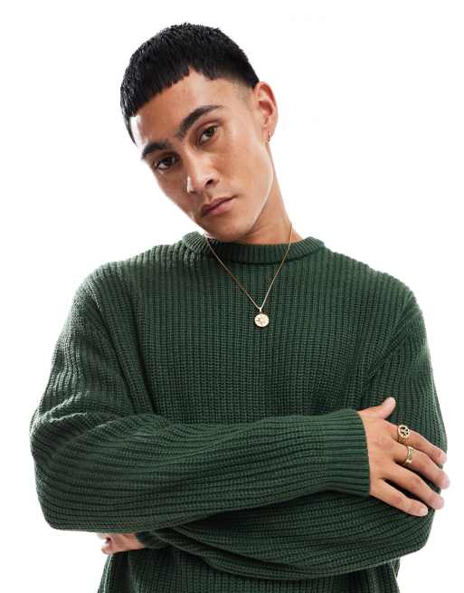 ASOS DESIGN - Oversized trøje i mørkegrøn patentstrik