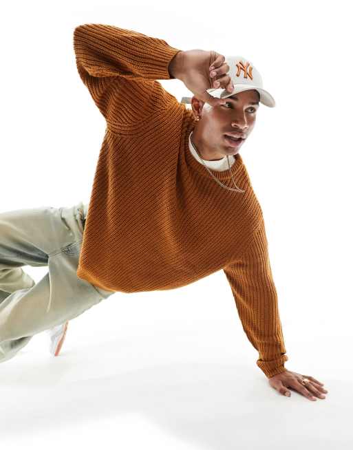 ASOS DESIGN - Oversized trøje med rund hals i brændt orange patentstrik