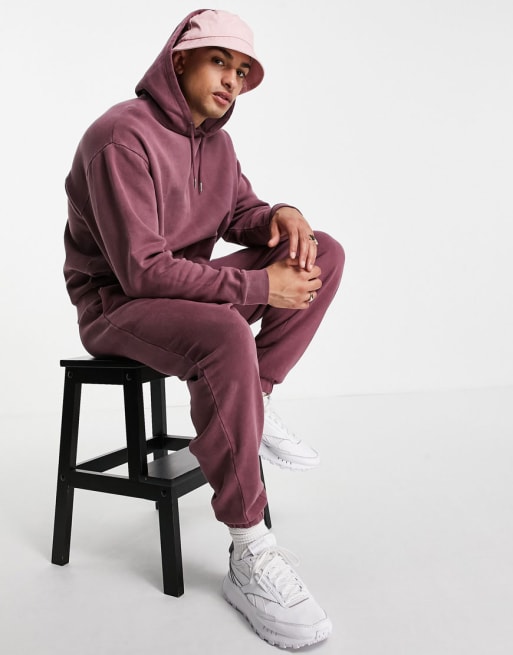 ASOS DESIGN - Oversized træningssæt i vasket bordeaux