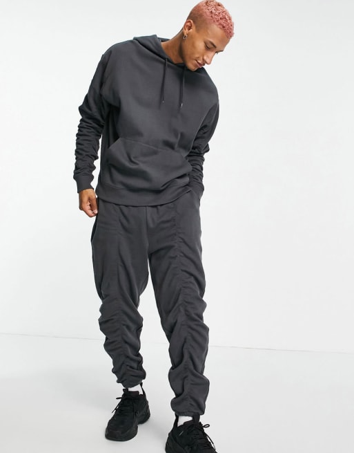 ASOS DESIGN - Oversized træningssæt med rynkede detaljer i forvasket sort