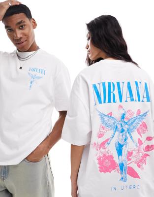 ASOS DESIGN - Oversized unisex-band-T-shirt i hvid med Nirvana-engleprint