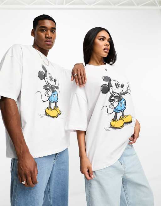 ASOS DESIGN - Oversized unisex-T-shirt med 'Mickey Mouse'-skitseprint i råhvid