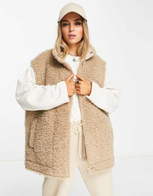 ASOS DESIGN - Oversized vest i kamelbrunt, imiteret lammeskind