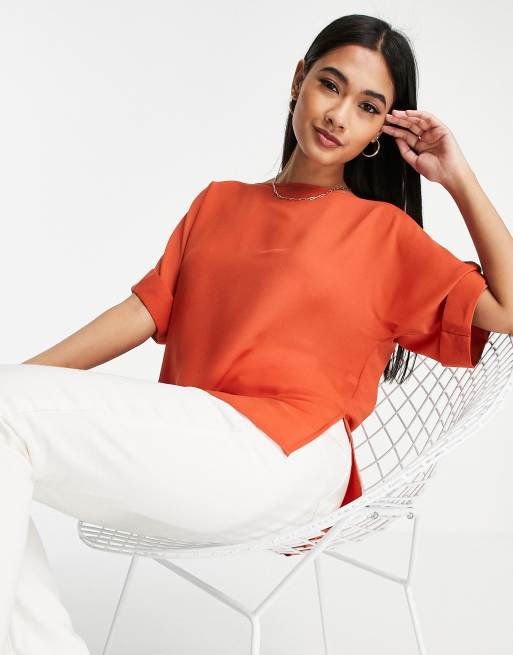 ASOS DESIGN - Oversized vævet T-shirt med oprullede ærmer i rustfarve
