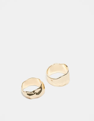 ASOS DESIGN - Pakke med 2 guldfarvede brede ringe med smeltet design