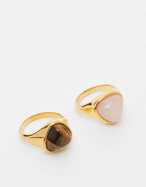 ASOS DESIGN - Pakke med 2 guldfarvede ringe med ægte halvædelsten i rustfrit stål