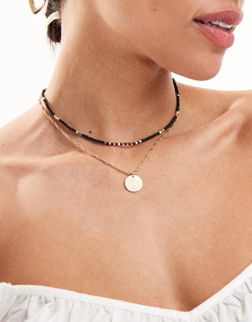ASOS DESIGN - Pakke med 2 halskæder med sort perle og diskdesign