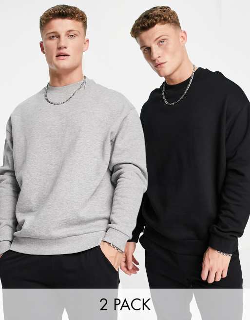ASOS DESIGN - Pakke med 2 oversized Sweatshirt i sort/gråmeleret - MULTI