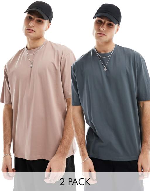 ASOS DESIGN - Pakke med 2 oversized t-shirts i brun og koksgrå