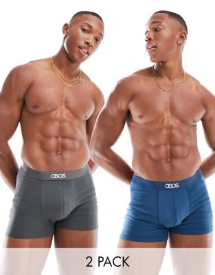 ASOS DESIGN - Pakke med 2 par blå og koksgrå boksershorts