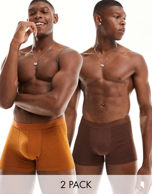 ASOS DESIGN - Pakke med 2 par boksershorts i brune nuancer