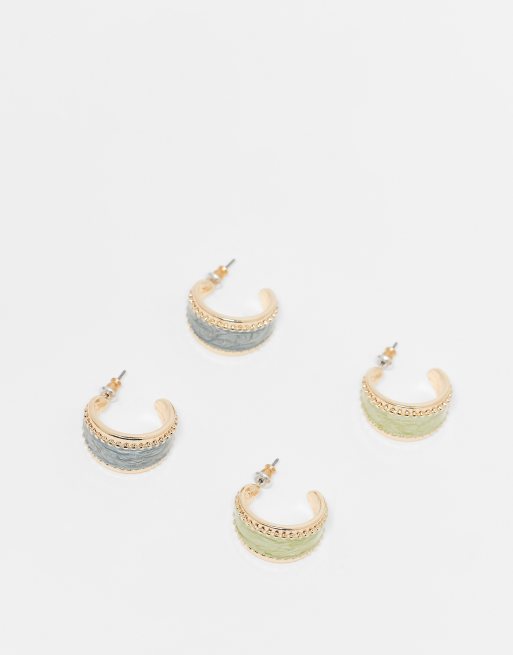 ASOS DESIGN - Pakke med 2 par hoop-øreringe i guldfarve med marmordetalje i emalje