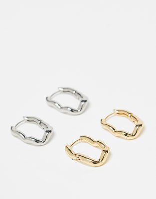 ASOS DESIGN - Pakke med 2 par hoop-øreringe med smeltede detaljer og kliklås i sølv- og guldfarve