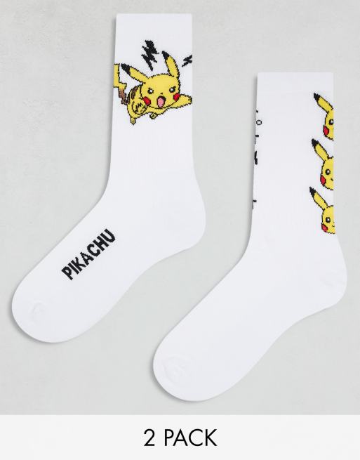 ASOS DESIGN - Pakke med 2 par hvide sokker med Pikachu-design
