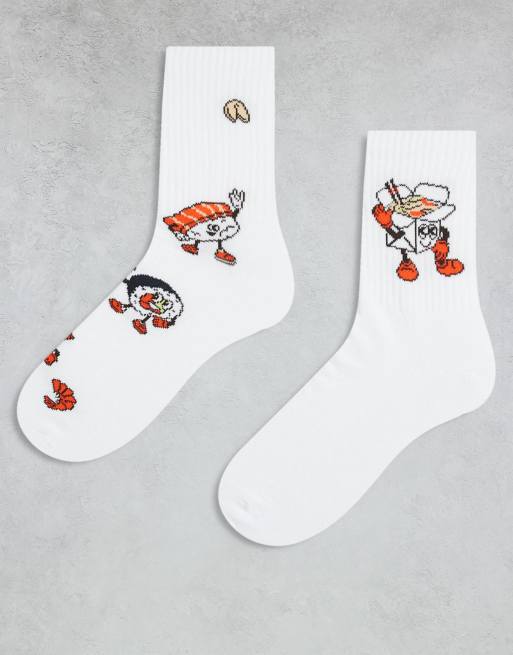 ASOS DESIGN - Pakke med 2 par hvide sokker med sushi-grafik
