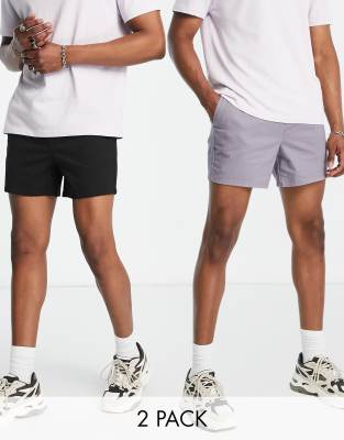 ASOS DESIGN - Pakke med 2 par korte slim-chinoshorts i blå og sort - Spar