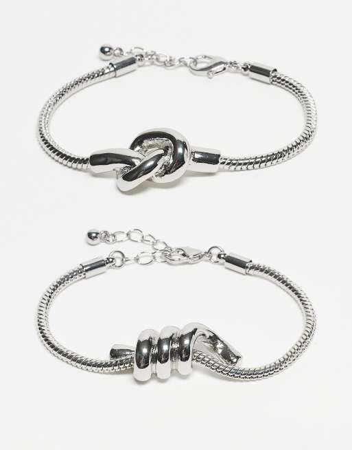 ASOS DESIGN - Pakke med 2 par sølvfarvede kædearmbånd med chunky knudedesign