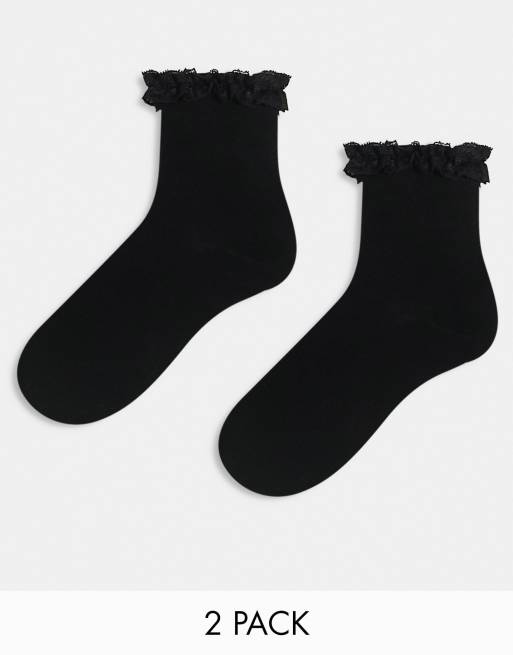 ASOS DESIGN - Pakke med 2 par sorte sokker med flæser øverst