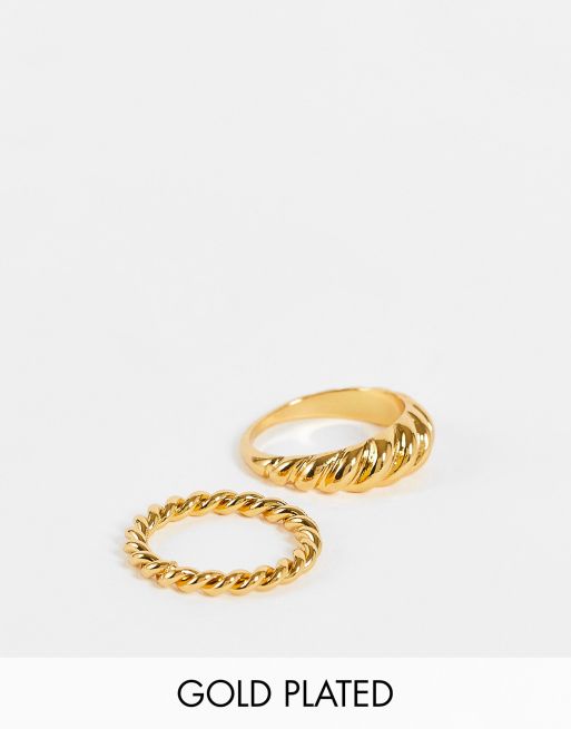 ASOS DESIGN - Pakke med 2 ringe med snoet design og 14 karat forgyldning