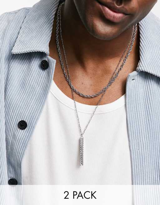ASOS DESIGN - Pakke med 2 sølvfarvede halskæder med panserkæde og aflangt vedhæng