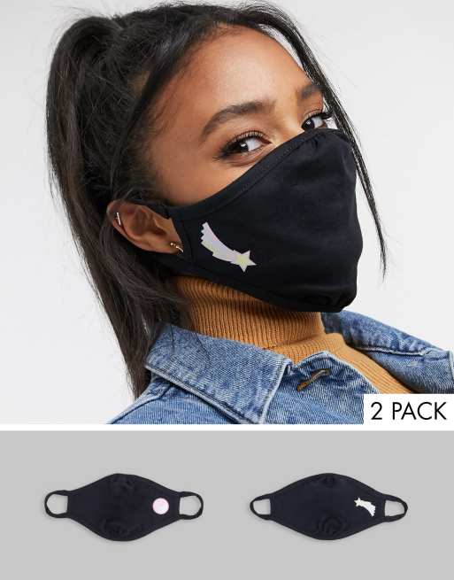 ASOS DESIGN - Pakke med 2 sorte masker med stjerne- og yinyang-print