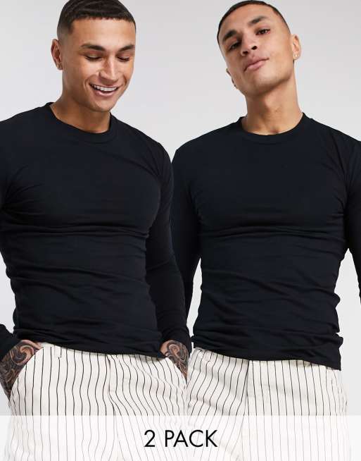 ASOS DESIGN - Pakke med 2 sorte tætsiddende langærmede T-shirts med rund hals