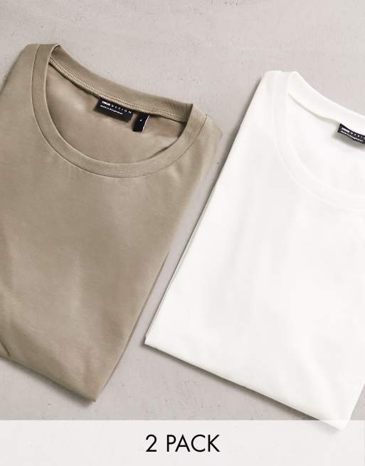 ASOS DESIGN - Pakke med 2 tætsiddende T-shirts i beige/hvid