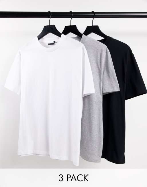 ASOS DESIGN - Pakke med 3 afslappede T-shirts med rund hals i hvid/gråmeleret/sort