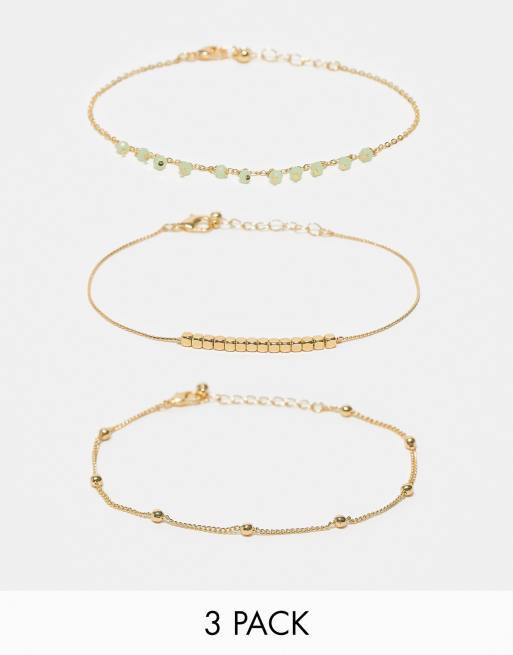 ASOS DESIGN - Pakke med 3 ankelkæder med grønne perledetaljer