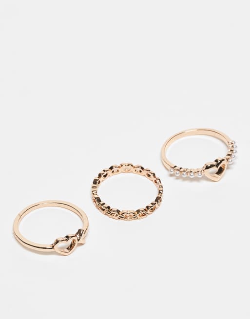 ASOS DESIGN - Pakke med 3 guldfarvede ringe med hjertedetaljer