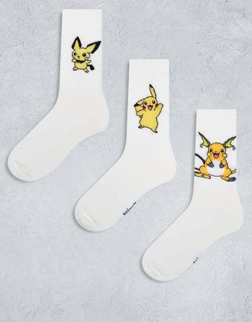 ASOS DESIGN - Pakke med 3 par hvide sokker med 'Pokémon'-karakterer