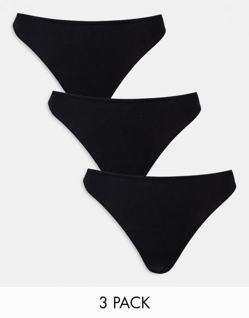 ASOS DESIGN - Pakke med 3 par ribstrikkede G-strenge i sort