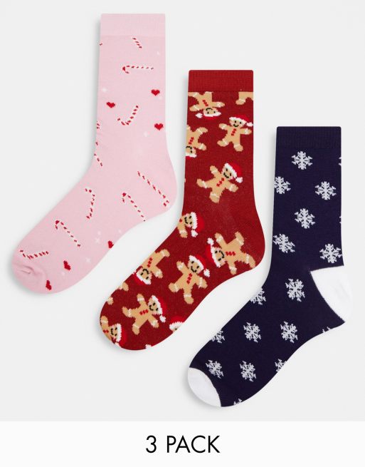 ASOS DESIGN - Pakke med 3 par sjove jule-sokker i gaveæske