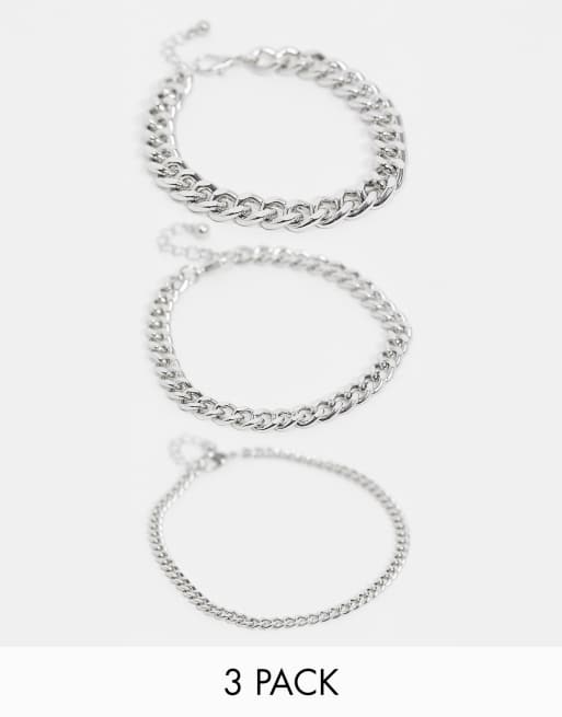 ASOS DESIGN - Pakke med 3 Sølvfarvede ankelkæder med kædeled i forskellige størrelser