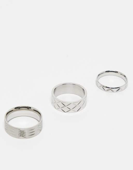 ASOS DESIGN - Pakke med 3 sølvfarvede båndringe med indgraveringer i vandtæt, rustfrit stål