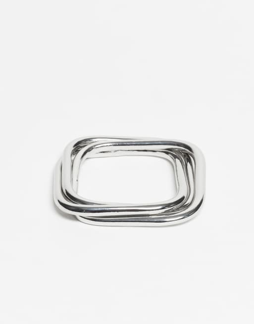 ASOS DESIGN - Pakke med 3 sølvfarvede firkantede armringe med sammenlåst design
