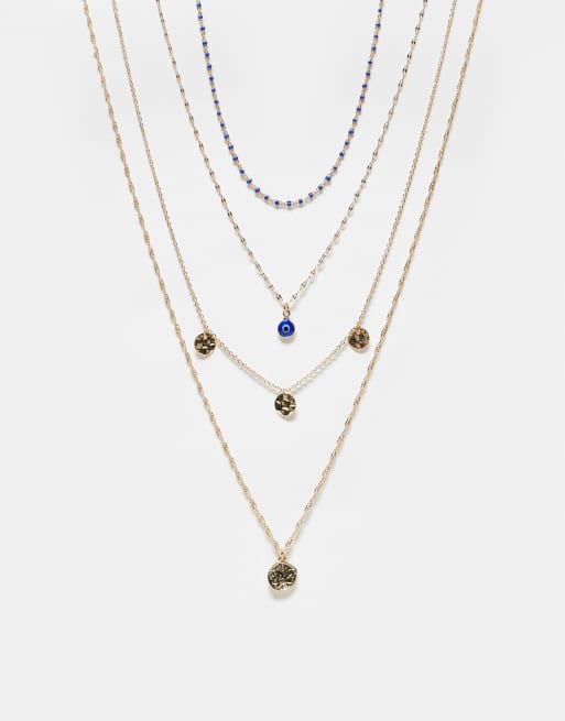 ASOS DESIGN - Pakke med 4 guldfarvede halskæder med skive- og øjevedhæng
