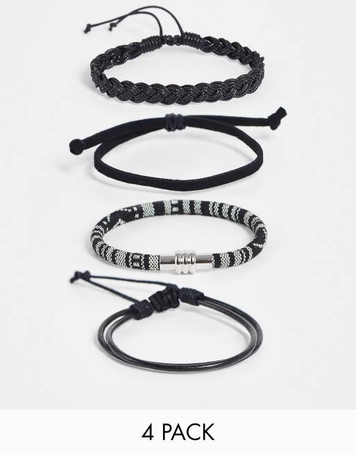 ASOS DESIGN - Pakke med 4 læderarmbånd og vævede armbånd i monokrome farver