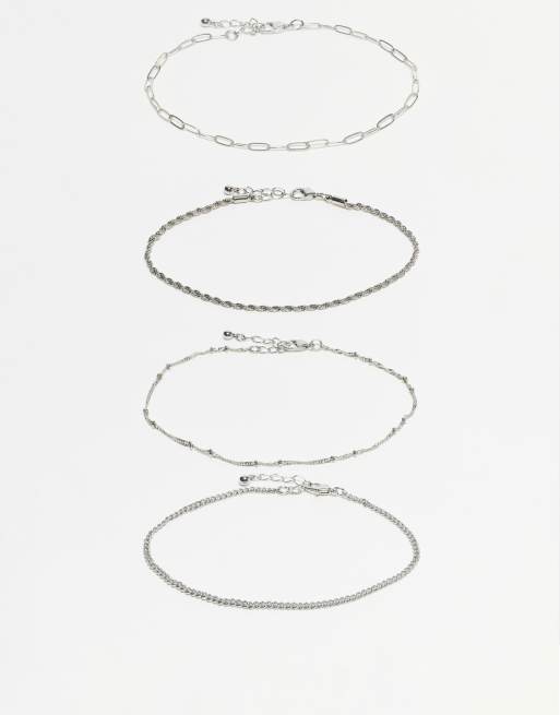 ASOS DESIGN - Pakke med 4 sølvfarvede ankelkæder med tynd kæde