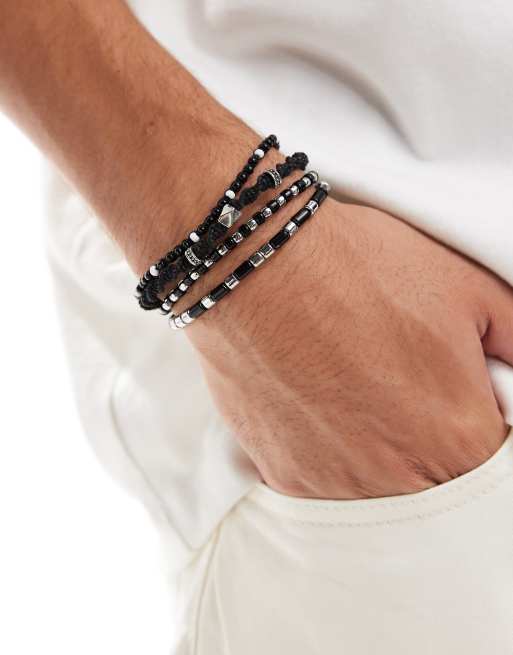 ASOS DESIGN - Pakke med 4 sorte armbånd i stof med perler