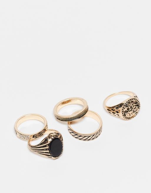 ASOS DESIGN - Pakke med 5 guldfarvede ringe med stendetaljer