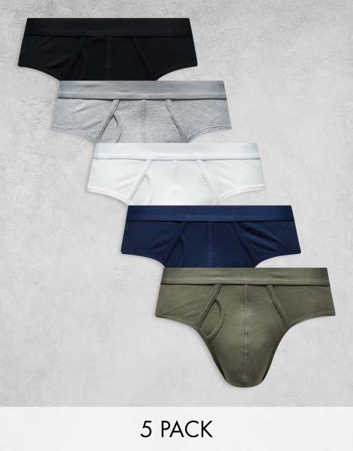 ASOS DESIGN - Pakke med 5 par ribstrikkede underbukser i forskellige farver