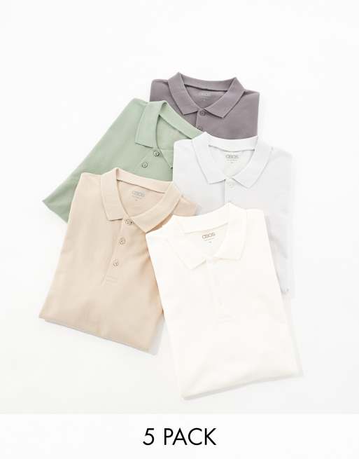 ASOS DESIGN - Pakke med 5 polotrøjer i piqué i forskellige farver