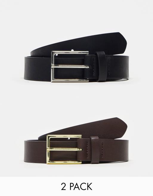 ASOS DESIGN - Pakke med elegant bælte i imiteret læder med sølv- og guldfarvede spænderskinny-bælter