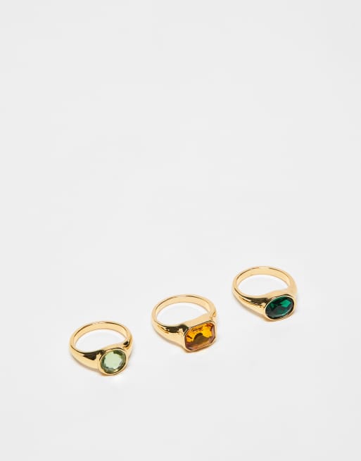 ASOS DESIGN - Pakke med guldfarvede ringe med farvede sten