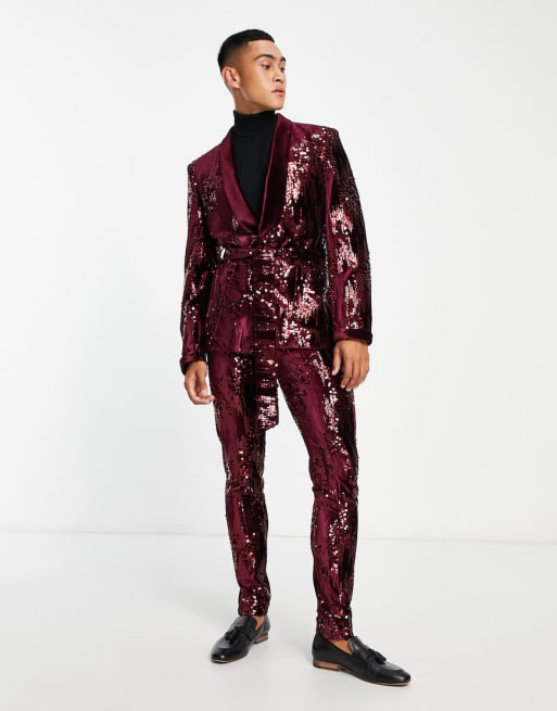 ASOS DESIGN - Pangrødt skinny-smoking i pailletstof