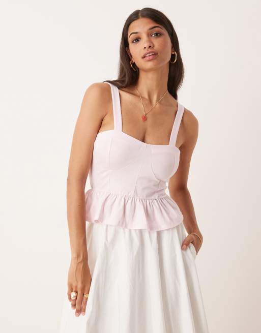 ASOS DESIGN - Pastellyserød milkmaid-korsettop med flæsekant forneden i bomuld